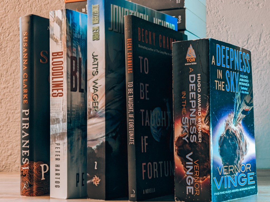 Bloodlines- I loved this book. It’s a pulpy kind of cyberpunk-horror-dark fantasy-scifi vibe I didn’t know I needed in my life. Tom “Doc” Holliday is an awesome character, and he is surrounded by equally great characters. I had a great time listening to the audiobook for this, and I look forward to Pieces of Eight.