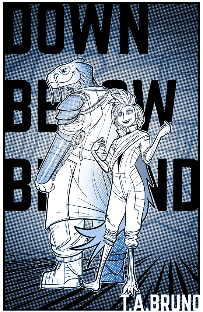 This train is running full steam! DOWN BELOW BEYOND is currently with beta readers and cover designer Lance Buckley! It’s been a fun ride so far, and I can’t wait to see what Lance comes up with for the cover. Meanwhile, I decided to take on the interior illustrations myself, including part artwork and chapter headers. I have revealed a few on social media so far (like the Levort Aatra one above) but I figured for my friends who check this blog, you deserve a little extra.